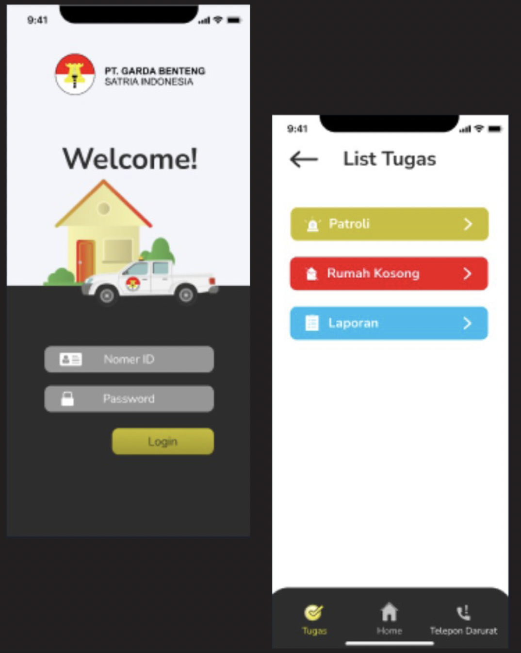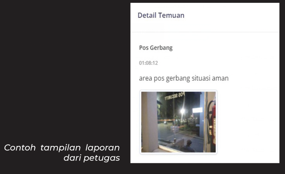 Sebagai bentuk komitmen kami dalam menjalankan tugas untuk memantau, mengontrol, dan menjaga keamanan, kami mengembangkan sebuah sistem aplikasi yang terintegrasi dengan server. Sistem ini akan dapat digunakan oleh klien, user, juga para petugas di lapangan sehingga dapat menciptakan rasa aman dan nyaman yang menyeluruh di lingkungan area tugas.